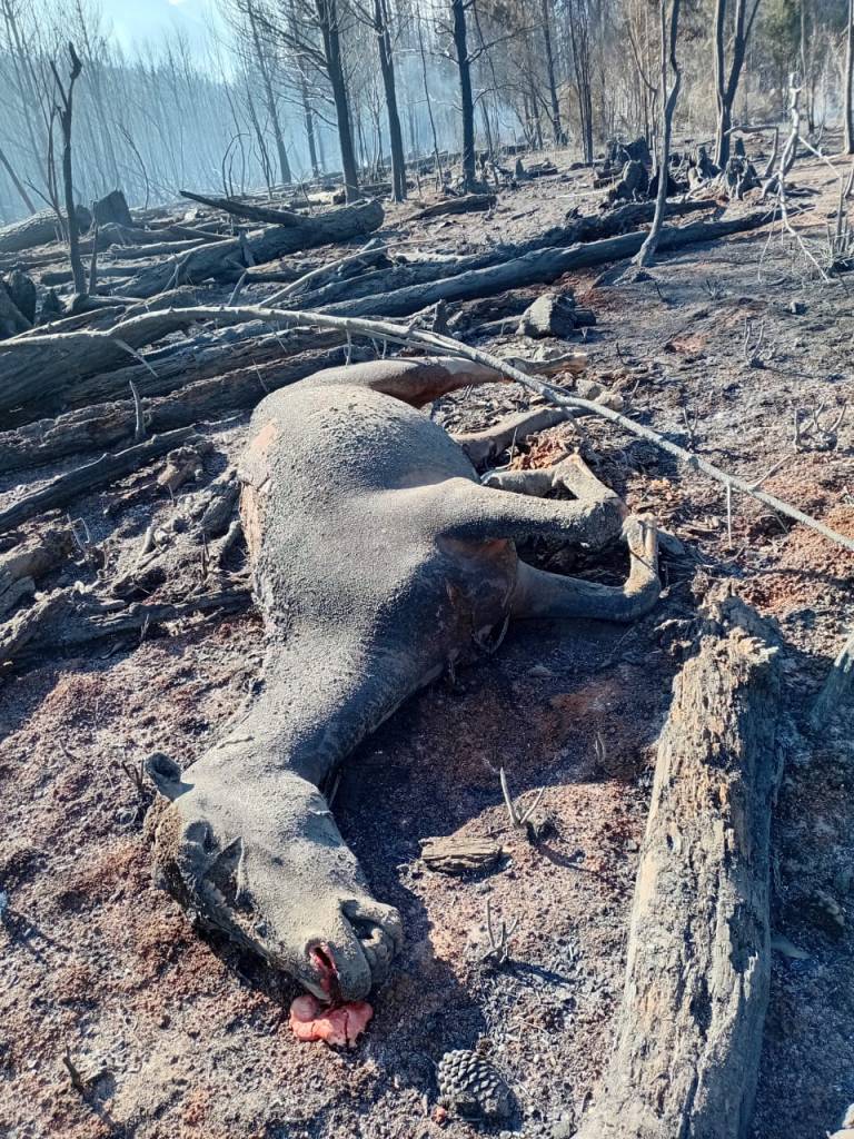 Los pobladores de la zona alcanzan a llevarse unas pocas pertenencias a cuesta y la esperanza ‒última en perderse‒ de que el viento no desparrame el fuego. Pero con el caer de la tarde, caen, también, sus ilusiones: “Se nos quemó todo. No quedó nada del campo. Mañana subo a ver qué quedó”, cuenta lamentándose con profunda tristeza una de las integrantes de la comunidad mapuche Pulgar Huentuquidel. En tan solo horas, los caballos de la familia están calcinados, las casas destruidas, la vegetación, el bosque y los pinos totalmente incinerados, y el incendio se propaga incontrolable a otras localidades.