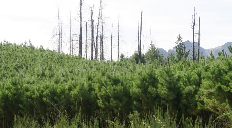 Renuevos de pinos luego de los incendios. Fotografía de Carolina Crespo